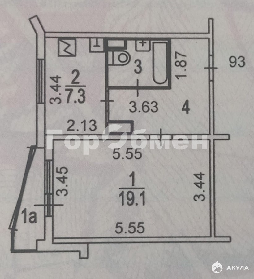 Жилая площадь – 19, 1 м2, кухня – 7, 3 м2 со встроенной мебелью и техникой остаётся в пользование новому владельцу (всё в рабочем состоянии, аккуратное и чистое). На кухне кондиционер.