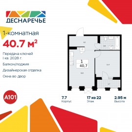 1-комн. квартира с отделкой в ЖК "Деснаречье" на 17 этаже. Общая площадь: 40.7 кв.м., жилая: 11.4 кв.м., площадь просторной кухни-столовой: 16.5 кв.м. Все окна выходят на одну сторону. В квартире одна лоджия, один совмещенный санузел. Высота потолков 2.95 м. Эта квартира будет сдана с...