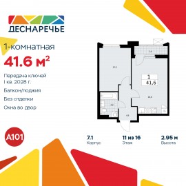 1-комн. квартира от застройщика с отделкой в ЖК "Деснаречье" на 2 этаже. Общая площадь: 41.5 кв.м., жилая: 12.5 кв.м., площадь просторной кухни-столовой: 18.5 кв.м. Все окна выходят на одну сторону. В квартире одна лоджия, один совмещенный санузел. Высота потолков 2.95 м. Эта квартира будет...