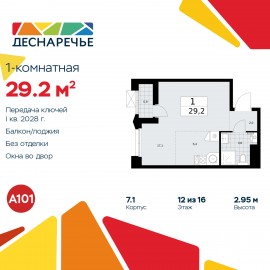 1-комн. квартира-студия от застройщика в ЖК "Деснаречье" на 12 этаже. Квартира без отделки, полностью готова к чистовой отделке и дальнейшему ремонту. Общая площадь: 29.2 кв.м., площадь гостиной 22.5 кв.м., из которых 5.4 кв.м. выделено под кухонную зону. Все окна выходят на одну...