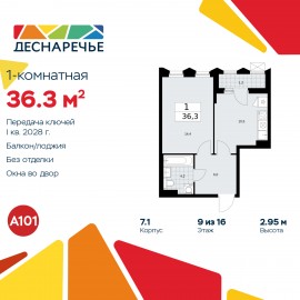 1-комн. квартира в ЖК "Деснаречье" на 9 этаже. Квартира без отделки, новый собственник может сделать ремонт по индивидуальному проекту. Общая площадь: 36.3 кв.м., жилая: 14.4 кв.м., площадь просторной кухни-столовой: 10.5 кв.м. Все окна выходят на одну сторону. В квартире одна лоджия,...