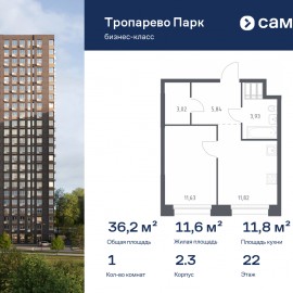 Строим кварталы для жизни с заботой о будущем. Предлагаются 1-комнатные апартаменты бизнес-класса 36, 24 кв.м в корпусе 2.3 на 22 этаже, в МФК «Тропарево Парк» Апартаменты с чистовой отделкой. Доступность дополнительных опций уточняйте у застройщика. Прописка не предусмотрена...