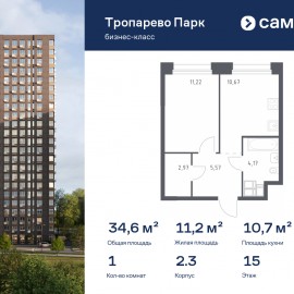 Строим кварталы для жизни с заботой о будущем. Предлагаются 1-комнатные апартаменты бизнес-класса 34, 6 кв.м в корпусе 2.3 на 15 этаже, в МФК «Тропарево Парк» Апартаменты с чистовой отделкой. Доступность дополнительных опций уточняйте у застройщика. Прописка не предусмотрена в...