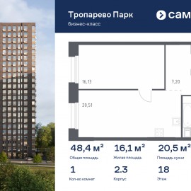 Строим кварталы для жизни с заботой о будущем. Предлагаются 1-комнатные апартаменты бизнес-класса 48, 42 кв.м в корпусе 2.3 на 18 этаже, в МФК «Тропарево Парк» Апартаменты с чистовой отделкой. Доступность дополнительных опций уточняйте у застройщика. Прописка не предусмотрена...
