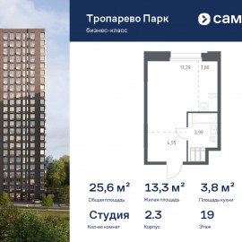 Строим кварталы для жизни с заботой о будущем. Предлагаются апартаменты студия бизнес-класса 25, 63 кв.м в корпусе 2.3 на 19 этаже, в МФК «Тропарево Парк» Апартаменты с чистовой отделкой. Доступность дополнительных опций уточняйте у застройщика. Прописка не предусмотрена в...