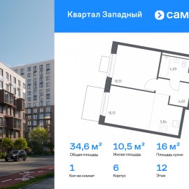 Строим кварталы для жизни с заботой о будущем. Предлагается 1-комнатная квартира комфорт-класса 34, 59 кв.м в корпусе 6 на 12 этаже, в ЖК «Квартал Западный» Квартира с чистовой отделкой. Доступность дополнительных опций уточняйте у застройщика. Приобрести квартиру возможно по...