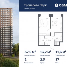 Строим кварталы для жизни с заботой о будущем. Предлагаются 1-комнатные апартаменты бизнес-класса 37, 16 кв.м в корпусе 2.3 на 17 этаже, в МФК «Тропарево Парк» Апартаменты с чистовой отделкой. Доступность дополнительных опций уточняйте у застройщика. Прописка не предусмотрена...