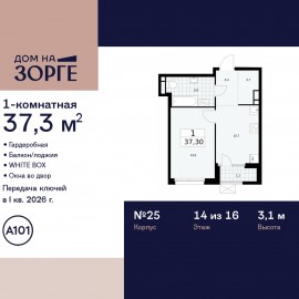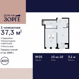 Просторная 1-комн. квартира с отделкой в ЖК "Дом на Зорге" на 15 этаже. Общая площадь: 37.3 кв.м., жилая: 13.5 кв.м., площадь просторной кухни-столовой: 10.7 кв.м. Все окна выходят на одну сторону. В квартире одна лоджия, один совмещенный санузел. Высота потолков 3.1 м. Имеется ниша под...