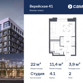 Строим кварталы для жизни с заботой о будущем. Предлагается квартира студия бизнес-класса 22, 03 кв.м в корпусе 4.1 на 2 этаже, в «Верейская 41» Квартира с чистовой отделкой. Доступность дополнительных опций уточняйте у застройщика. Приобрести квартиру возможно по специальным...