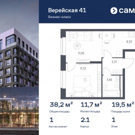 Строим кварталы для жизни с заботой о будущем. Предлагается 1-комнатная квартира бизнес-класса 38, 19 кв.м в корпусе 2.1 на 1 этаже, в «Верейская 41» Квартира без отделки. Доступность опции «отделка» и возможность комплектации мебелью и декором уточняйте у...