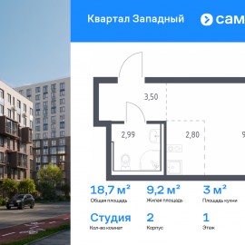 Строим кварталы для жизни с заботой о будущем. Предлагается квартира студия комфорт-класса 18, 73 кв.м в корпусе 2 на 1 этаже, в ЖК «Квартал Западный» Квартира с чистовой отделкой. Доступность дополнительных опций уточняйте у застройщика. Приобрести квартиру возможно по...