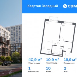 Строим кварталы для жизни с заботой о будущем. Предлагается 1-комнатная квартира комфорт-класса 40, 9 кв.м в корпусе 10 на 2 этаже, в ЖК «Квартал Западный» Квартира с чистовой отделкой. Доступность дополнительных опций уточняйте у застройщика. Приобрести квартиру возможно по...