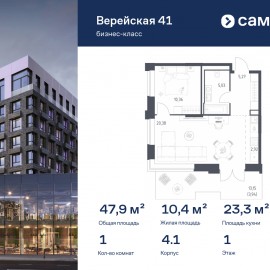 Строим кварталы для жизни с заботой о будущем. Предлагается 1-комнатная квартира бизнес-класса 47, 9 кв.м в корпусе 4.1 на 1 этаже, в «Верейская 41» Квартира без отделки. Доступность опции «отделка» и возможность комплектации мебелью и декором уточняйте у...