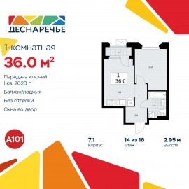 1-комн. квартира в ЖК "Деснаречье" на 14 этаже. Квартира без отделки, новый владелец может сделать ремонт по своему дизайн-проекту. Общая площадь: 36 кв.м., жилая: 11.6 кв.м., площадь просторной кухни-столовой: 13.1 кв.м. Все окна выходят на одну сторону. В квартире одна лоджия, один...