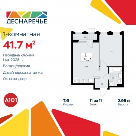 1-комн. квартира от застройщика с отделкой в ЖК "Деснаречье" на 11 этаже. Общая площадь: 41.7 кв.м., жилая: 13.1 кв.м., площадь просторной кухни-столовой: 18.9 кв.м. Все окна выходят на одну сторону. В квартире одна лоджия, один совмещенный санузел. Высота потолков 2.95 м. Эта квартира...