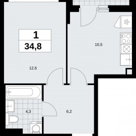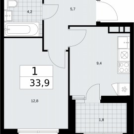 1-комн. квартира в ЖК "Бунинские кварталы" на 16 этаже. Квартира без отделки, полностью готова к чистовой отделке и дальнейшему ремонту. Общая площадь: 33.9 кв.м., жилая: 12.1 кв.м., площадь просторной кухни-столовой: 9.8 кв.м. Все окна выходят на одну сторону. В квартире одна лоджия,...