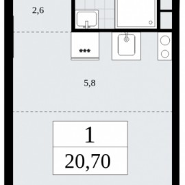 Однокомнатная квартира-студия от застройщика с отделкой в ЖК "Бунинские кварталы" на 4 этаже. Общая площадь: 20.9 кв.м., площадь гостиной 12.5 кв.м., из которых 5.2 кв.м. выделено под кухонную зону. Все окна выходят на одну сторону. В квартире один балкон, один совмещенный санузел....