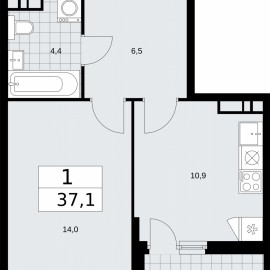 Просторная однокомнатная квартира с отделкой в ЖК "Бунинские кварталы" на 9 этаже. Общая площадь: 37.1 кв.м., жилая: 14 кв.м., площадь просторной кухни-столовой: 10.9 кв.м. Все окна выходят на одну сторону. В квартире одна лоджия, один совмещенный санузел. Высота потолков 2.95 м. Дом...