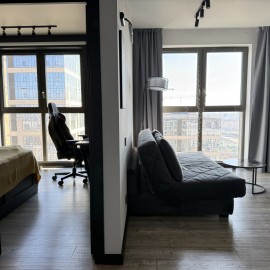 Продается прекрасно оборудованная видовая квартира в ЖК Селигер-Сити О КВАРТИРЕ: полностью оборудованная видовая квартира на последнем этаже с панорамными окнами в пол и захватывающим видом на Москву! ПЛАНИРОВКА: кухня-гостиная (15 м2), спальня (10 м2), просторная ванная...