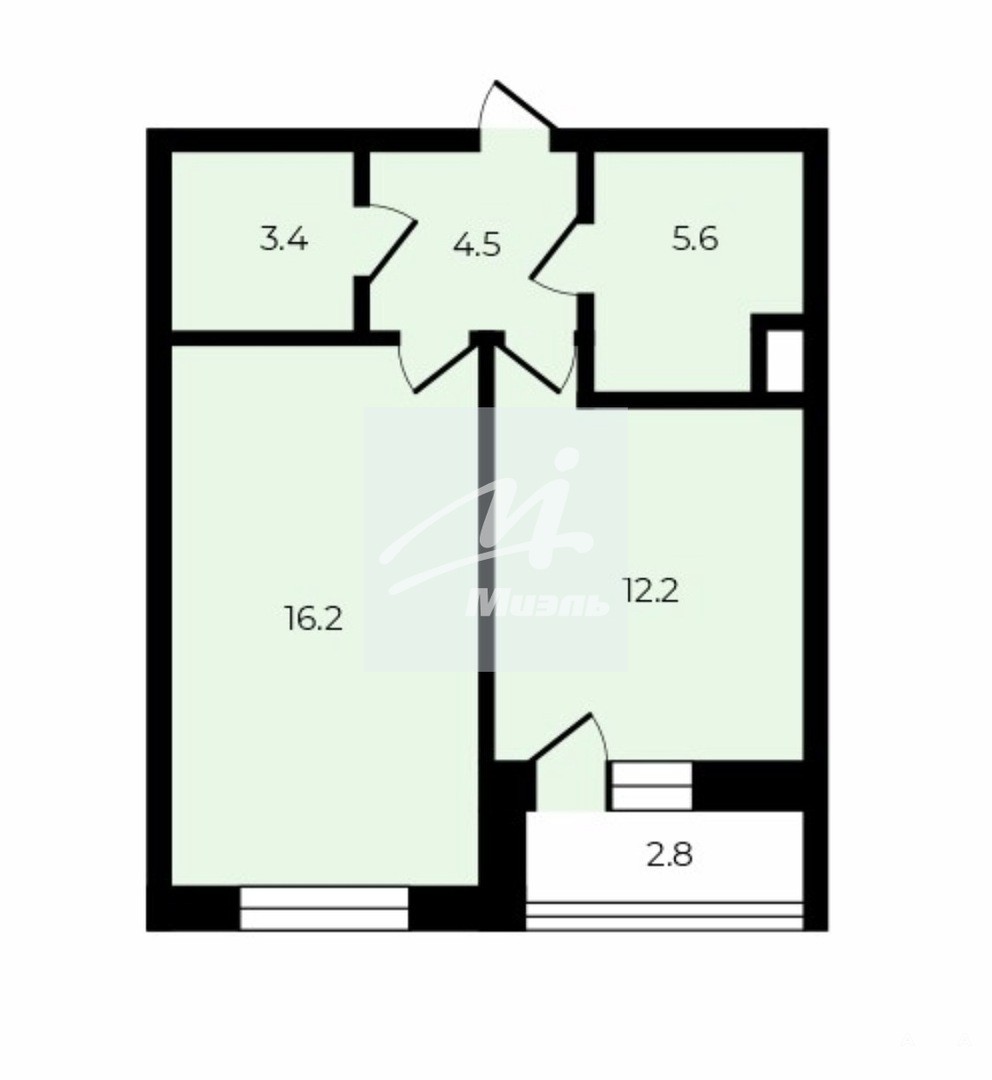 Большая жилая комната 16, 2 кв.м. позволяет организовать офисное пространство, спальную зону и зону отдыха.