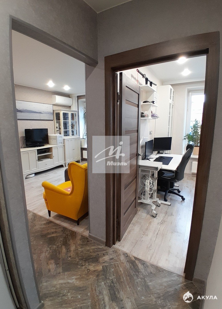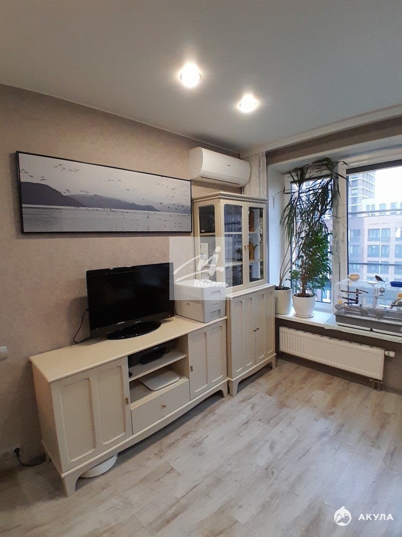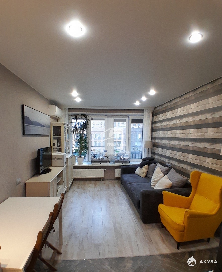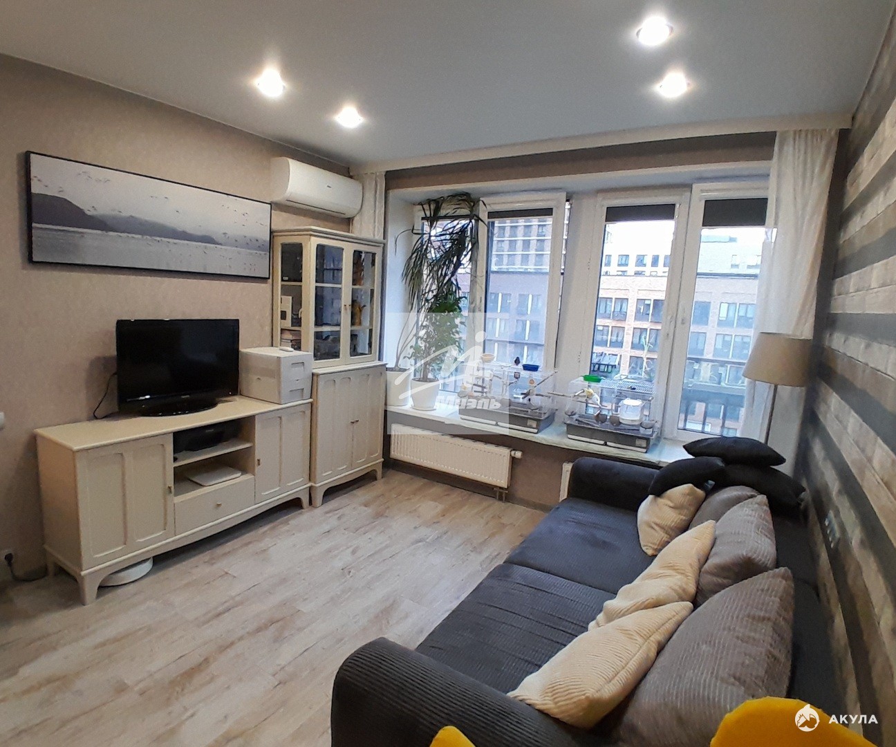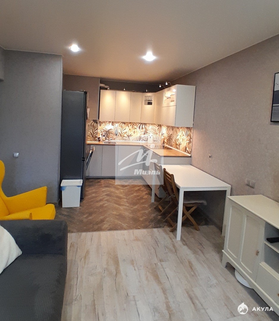 Отличное состояние и удобная планировка: кухня-гостиная, отдельная комната с диваном и рабочим местом, совмещенный санузел с ванной, высокие потолки.