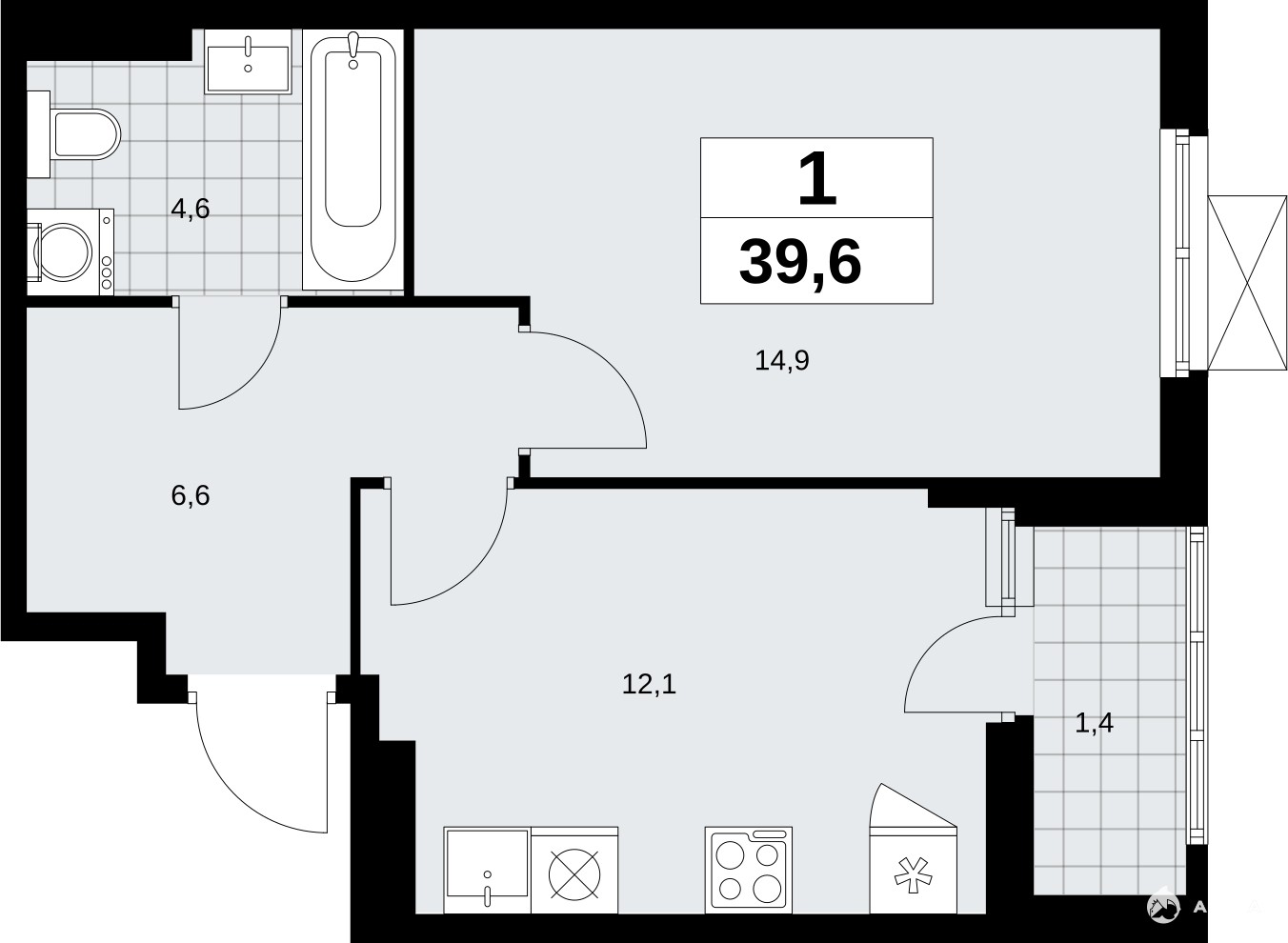 - 14.9 м²
