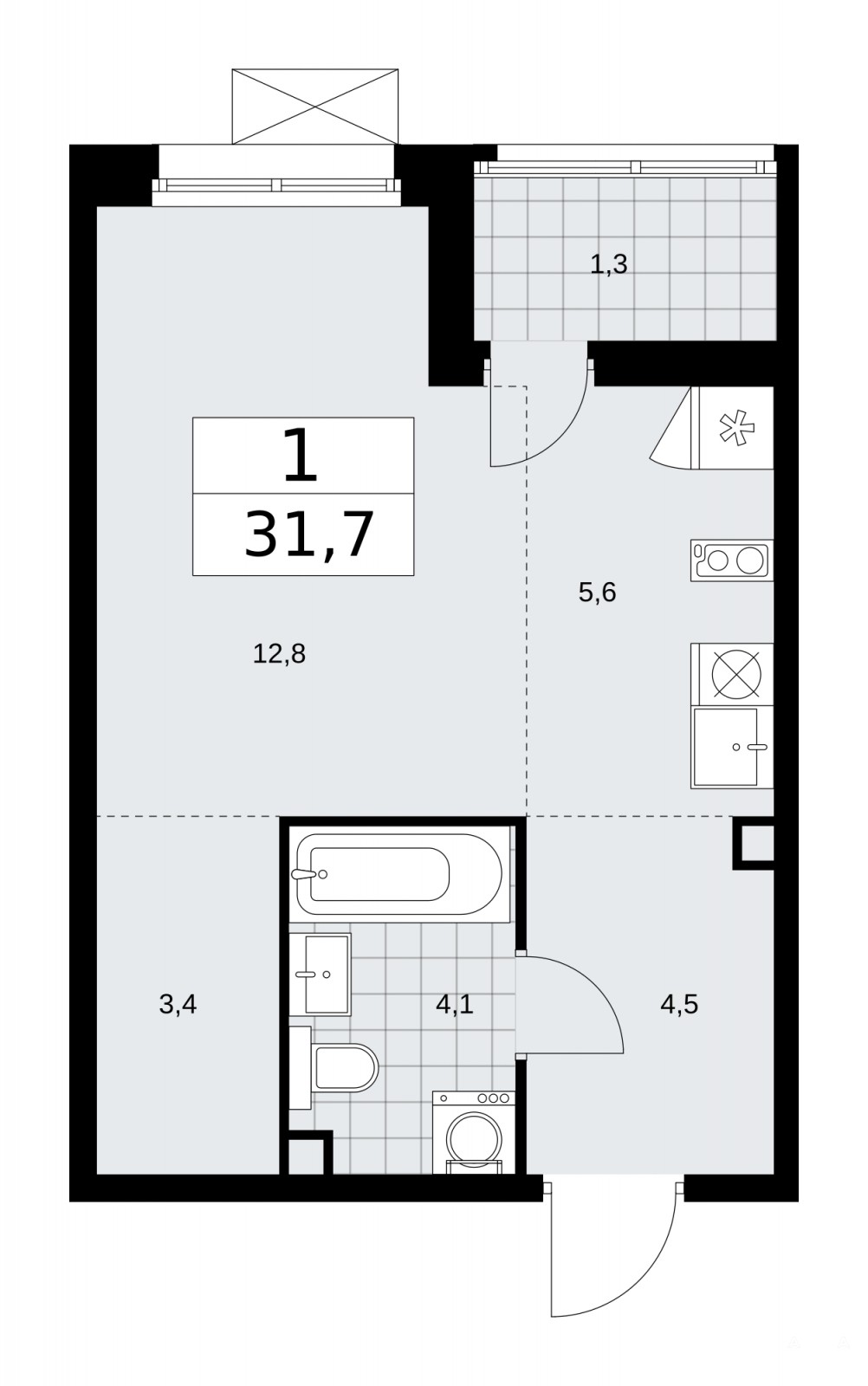 Просторная 1-комн. квартира-студия в ЖК "Дзен-кварталы" на 2 этаже. Квартира без отделки, после оформления собственности можно делать ремонт. Общая площадь: 31.7 кв.м., площадь гостиной 18.4 кв.м., из которых 5.6 кв.м. выделено под кухонную зону. Все окна выходят на одну сторону. В квартире одна лоджия, один совмещенный санузел. Высота потолков 3.1 м.