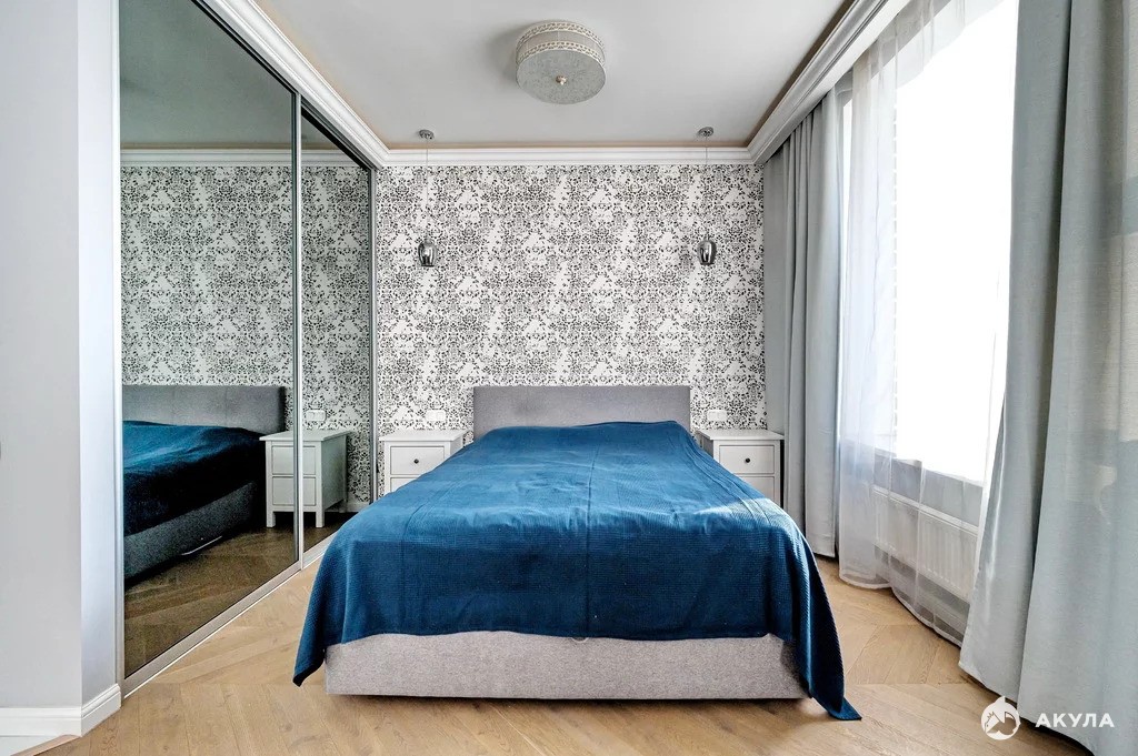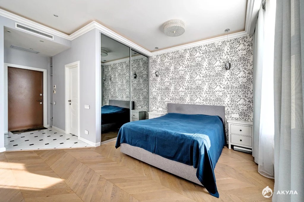 В квартире выполнен дизайнерский ремонт. В отделке использовались качественные материалы (паркетная доска – дуб шпон, деревянные стеклопакеты, испанская напольная плитка и т.д.). Вся мебель, бытовая техника и сантехническое оборудование от ведущих производителей. В квартире установлена регулируемая центральная система кондиционирования. В коридоре, санузле и на кухне - теплый пол.