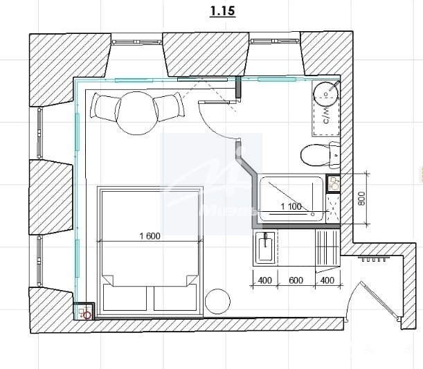 Площадь помещения 15, 1 м2. Высота потолков 3.2м придает помещению объем и визуально увеличивает пространство. Помещение (2.17) расположено на 2м этаже особняка, с окнами выходящими на тихий зеленый сквер.