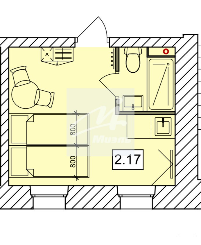 Площадь помещения 15, 1 м2. Высота потолков 3.2м придает помещению объем и визуально увеличивает пространство. Помещение (2.17) расположено на 2м этаже особняка, с окнами выходящими на тихий зеленый сквер.