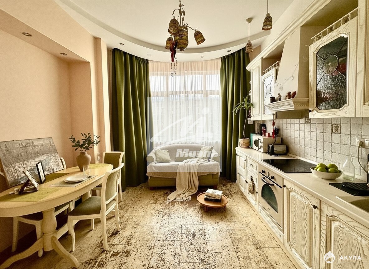 • Кухня (16 м²): Кухонный гарнитур, полная комплектация бытовой техникой (включая ПММ).