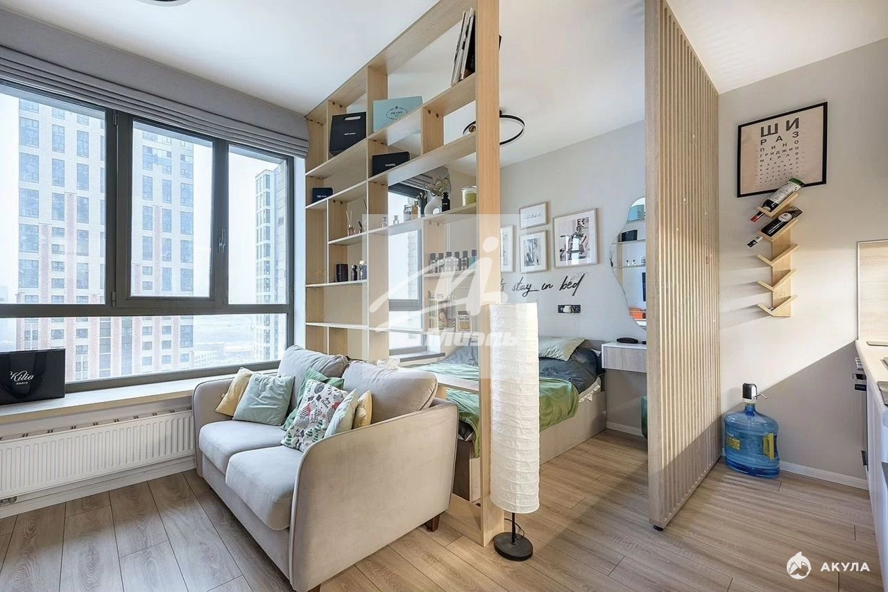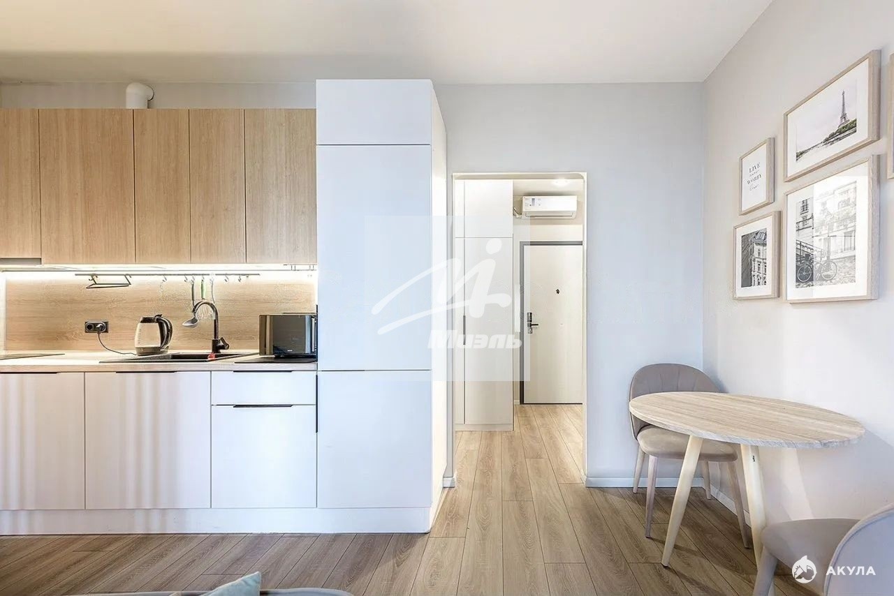 Вся мебель на заказ (мебель остаётся): два больших шкафа в потолок, диван-кровать, картины, стулья, кровать с ортопедическим матрасом, перегородка, римские шторы, качественный кухонный гарнитур. Техника: умный телевизор Хiаоmi, кондиционер, встроенная техника (немецкий холодильник, итальянская плита и духовой шкаф), винные полки для ценителей.