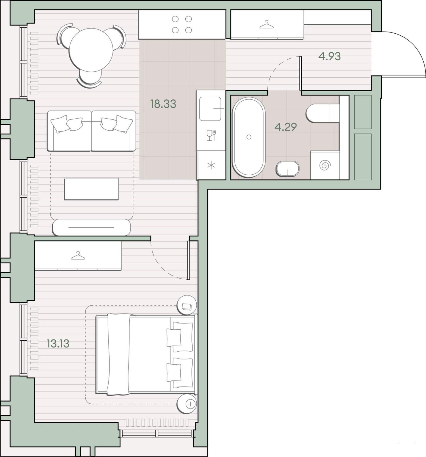 Жилая площадь 13.13 м2, кухня 18.33 м2, предчистовая отделка, комнаты изолированные.