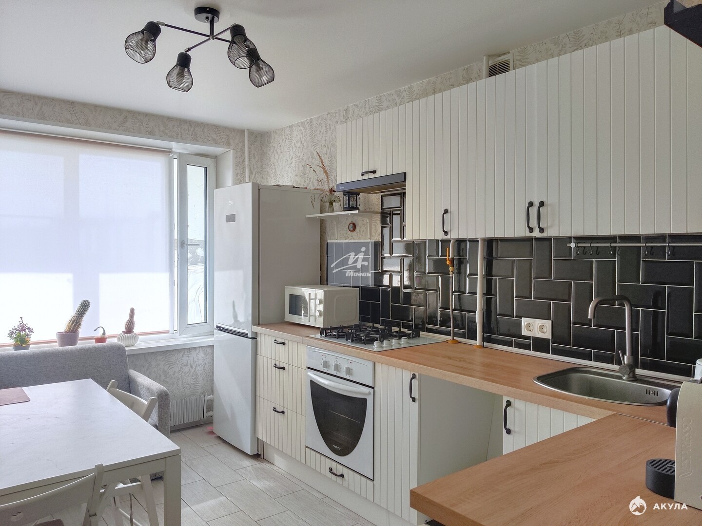 Светлая квартира с ремонтом и мебелью в очень зеленом районе.