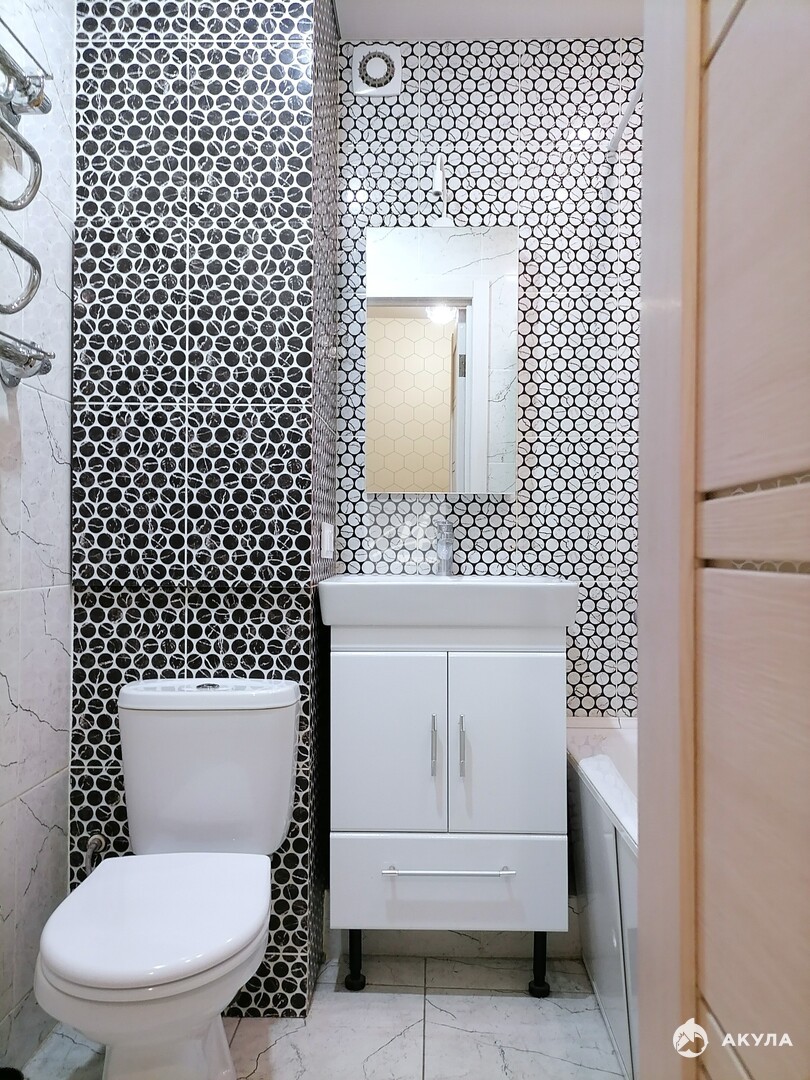 Просторная комната 19.4 м2 с альковом, кухня 9.6 м2, большая лоджия на два окна дает возможность увеличить полезное пространство.