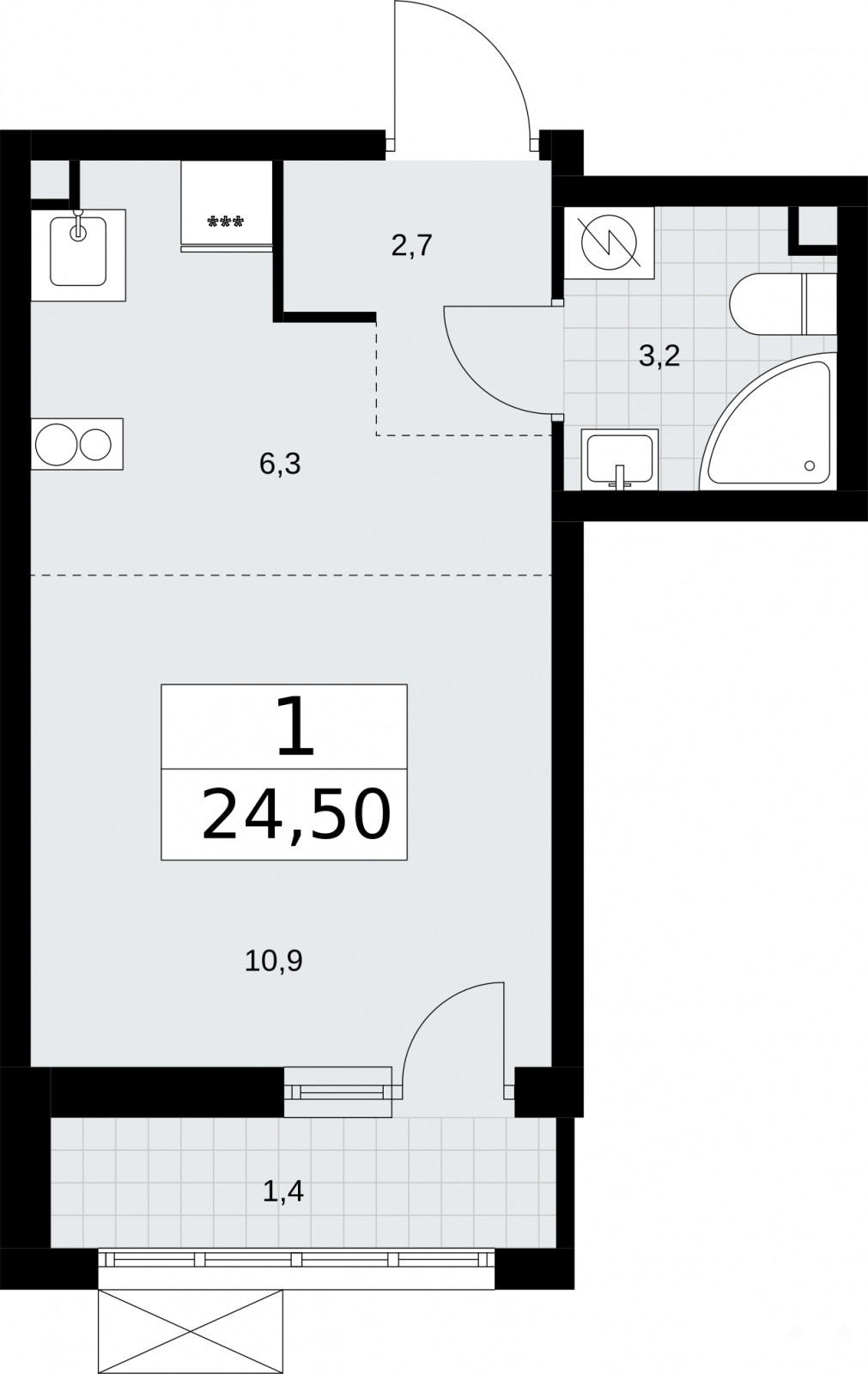 Просторная 1-комн. квартира-студия в ЖК "Родные кварталы" на 2 этаже. Квартира без отделки, полностью готова к ремонту. Общая площадь: 24.5 кв.м., площадь гостиной 17.2 кв.м., из которых 6.3 кв.м. выделено под кухонную зону. Все окна выходят на одну сторону. В квартире один балкон, один совмещенный санузел. Высота потолков 2.9 м.