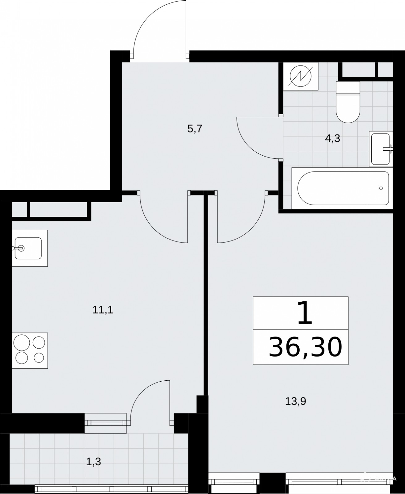 Продается 1-комн. квартира от застройщика с отделкой в ЖК "Родные кварталы" на 4 этаже. Общая площадь: 36.3 кв.м., жилая: 13.9 кв.м., площадь просторной кухни-столовой: 11.1 кв.м. Все окна выходят на одну сторону. В квартире одна лоджия, один совмещенный санузел. Высота потолков 2.9 м.