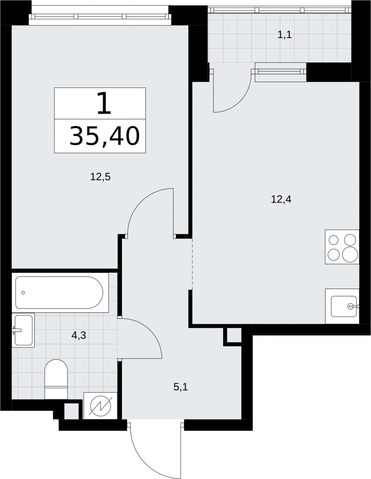 - 12.40 м²