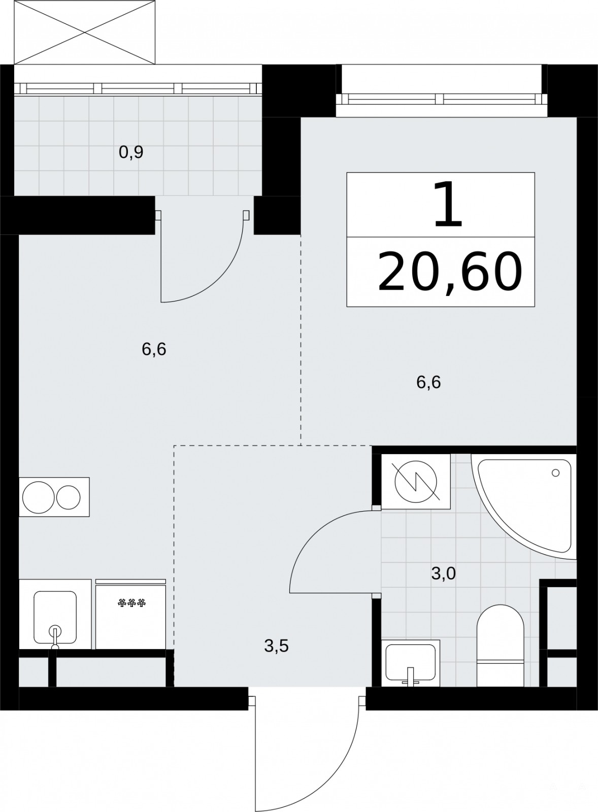 Продается 1-комн. квартира-студия в ЖК "Родные кварталы" на 8 этаже. Квартира без отделки, после получения ключей можно делать ремонт. Общая площадь: 20.6 кв.м., площадь гостиной 13.2 кв.м., из которых 6.6 кв.м. выделено под кухонную зону. Все окна выходят на одну сторону. В квартире одна лоджия, один совмещенный санузел. Высота потолков 2.9 м.