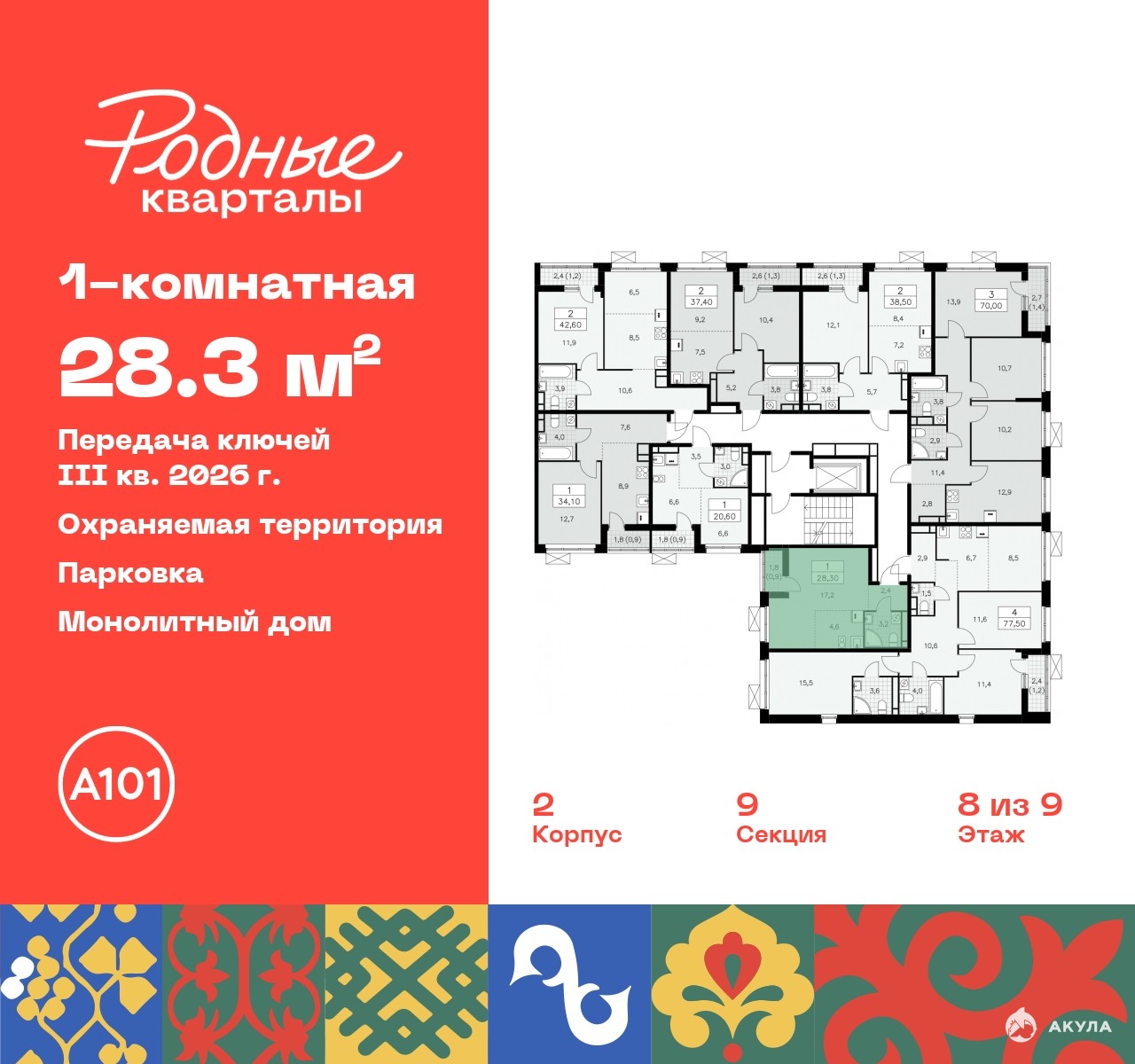 Дом монолитный, многоподъездный, высотой 9 этажей. Квартира находится в 9-й секции в корпусе 2. На этаже 8 квартир. В подъезде 1 грузовой лифт. Начало строительства - 4 квартал 2023 года. Окончание строительства - 3 квартал 2026 года. Оформление сделки по договору долевого участия.