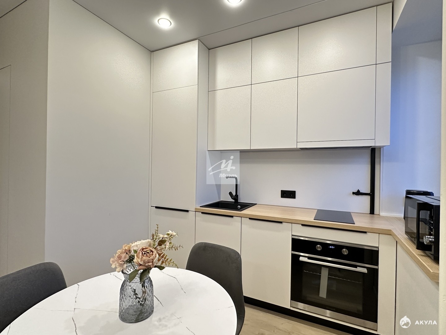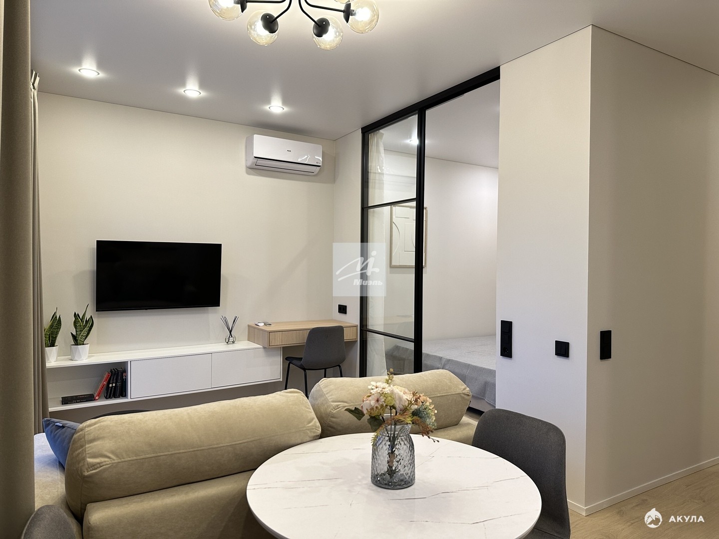 Квартира с роскошным , дизайнерским ремонтом, готовая для проживания. Удобная планировка: гостиная функционально разделена стильной стеклянной перегородкой, в результате чего получили изолированную комнату с большим спальным местом и встроенной, вместительной системой хранения. Окна выходят на тихую улицу и имеют повышенную шумоизоляцию. Совмещенный санузел оснащен сантехникой премиальных брендов, что гарантирует повышенное качество. Правильно выстроенное освещение создает дополнительный уют.