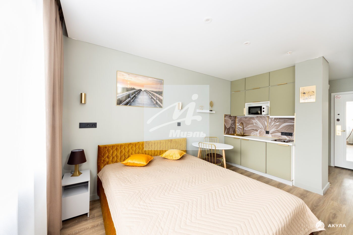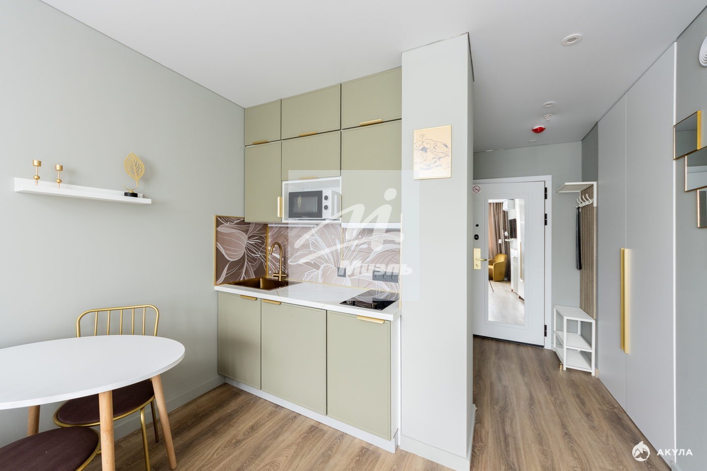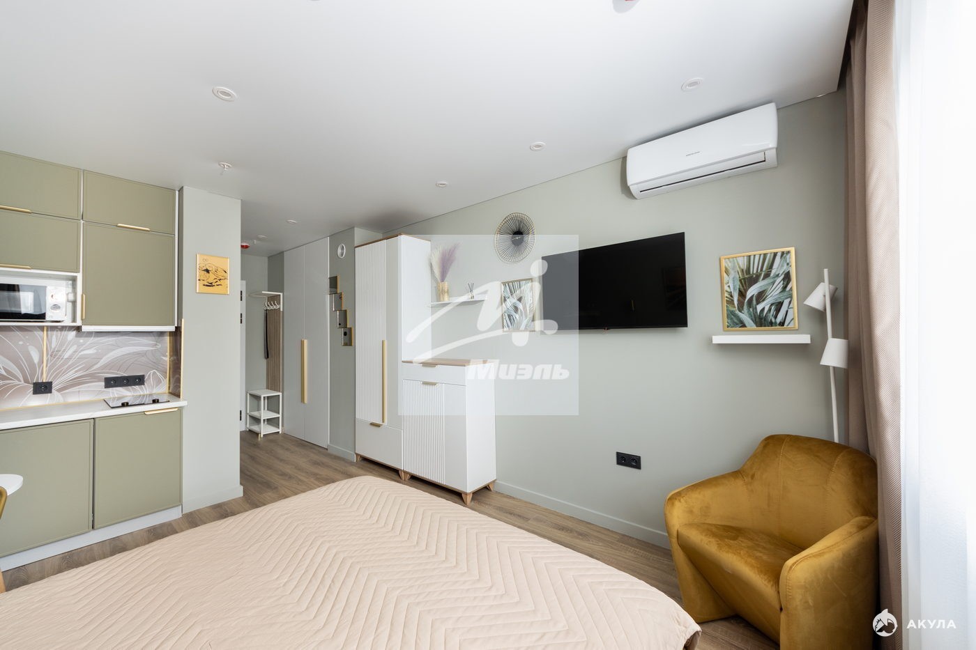Студия с дизайнерским ремонтом и всем необходимым для комфортного проживания: 2-х спальная кровать с подъемным механизмом и ортопедическим матрасом, уютное кресло, шкафы и комод, кухня, укомплектованная бытовой техникой (варочная панель, холодильник, СВЧ, чайник, посуда). Установлен кондиционер, телевизор и проведен интернет.