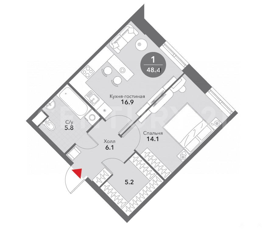 - 14.1 м²