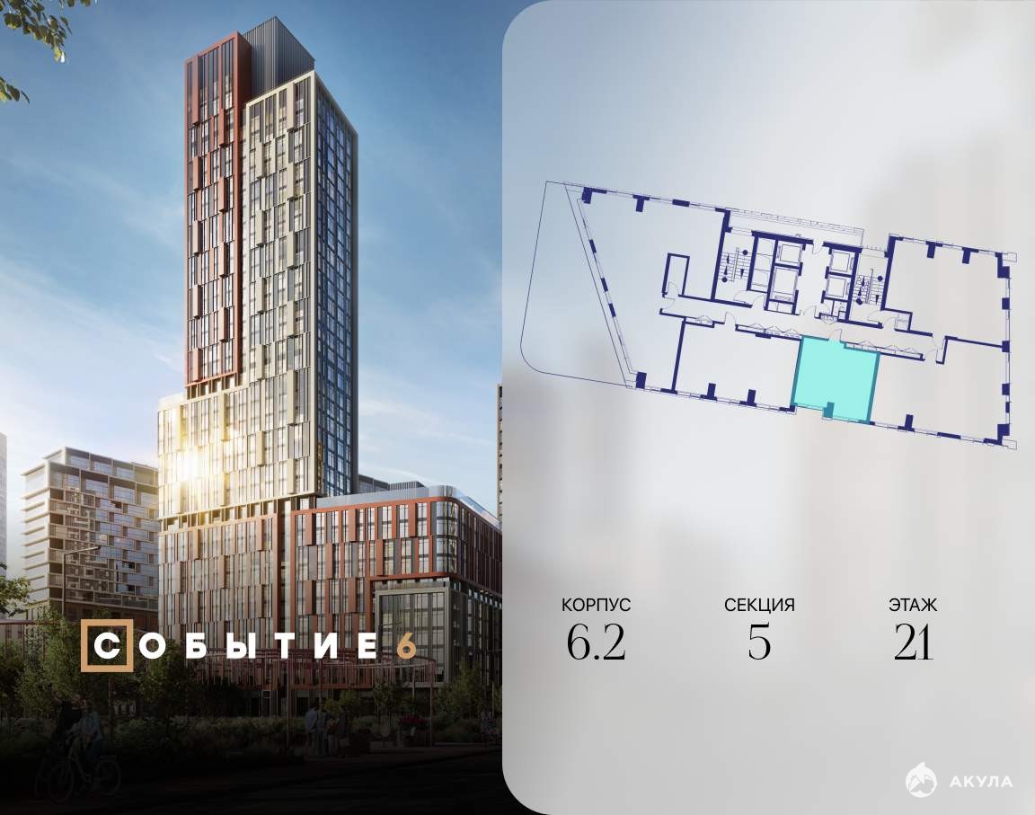 Продаётся 1-комнатная квартира от застройщика: общая площадь 38.30 м, жилая 14.60 м, кухня 15.70 м, 21-й этаж, жилой квартал «Событие-6», корпус 2 (секция 5) Срок сдачи: 1 квартал 2029 года.