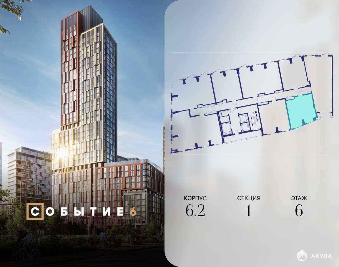 Продаётся 1-комнатная квартира от застройщика: общая площадь 45.20 м, жилая 15.20 м, кухня 22.40 м, 6-й этаж, жилой квартал «Событие-6», корпус 2 (секция 1) Срок сдачи: 1 квартал 2029 года.