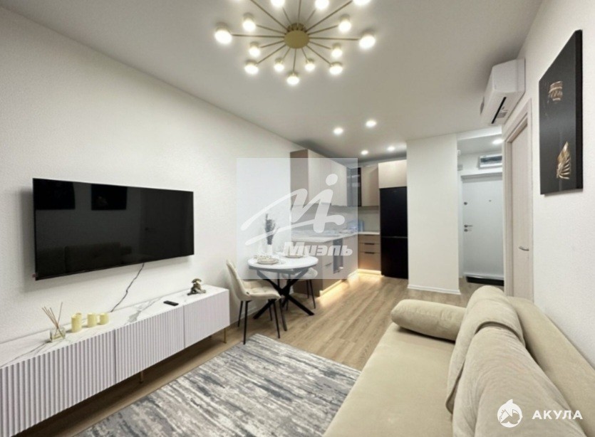 Отличное состояние и удобная планировка: просторная кухня-гостиная, спальня с гардеробной, совмещённый санузел с ванной. Высокие потолки. Свободные виды из окон с высоты создают ощущение простора.