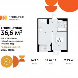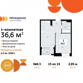 Просторная 1-комн. квартира с отделкой в ЖК "Прокшино" на 19 этаже. Общая площадь: 36.6 кв.м., жилая: 12.4 кв.м., площадь просторной кухни-столовой: 14.7 кв.м. Все окна выходят на одну сторону. В квартире одна лоджия, один совмещенный санузел. Высота потолков 2.95 м. Эта квартира будет...