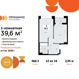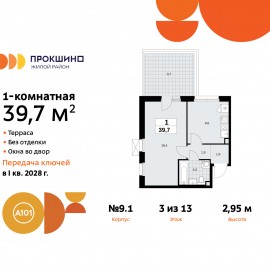 Однокомнатная квартира от застройщика с отделкой в ЖК "Прокшино" на 12 этаже. Общая площадь: 39.6 кв.м., жилая: 14.8 кв.м., площадь просторной кухни-столовой: 12.1 кв.м. Все окна выходят на одну сторону. В квартире одна лоджия, один совмещенный санузел. Высота потолков 2.95 м. Эта...