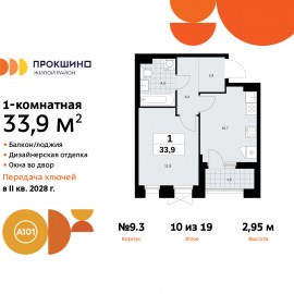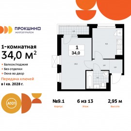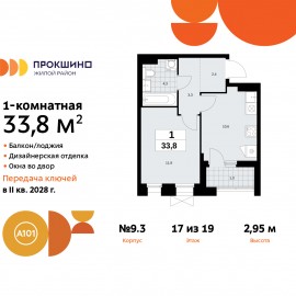1-комн. квартира от застройщика с отделкой в ЖК "Прокшино" на 11 этаже. Общая площадь: 33.9 кв.м., жилая: 11.9 кв.м., площадь просторной кухни-столовой: 10.7 кв.м. Все окна выходят на одну сторону. В квартире одна лоджия, один совмещенный санузел. Высота потолков 2.95 м. Эта квартира будет...