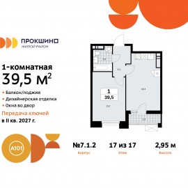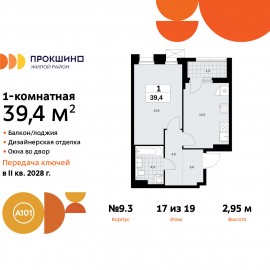 Продается 1-комн. квартира от застройщика с отделкой в ЖК "Прокшино" на 17 этаже. Общая площадь: 39.5 кв.м., жилая: 13.7 кв.м., площадь просторной кухни-столовой: 16.3 кв.м. Все окна выходят на одну сторону. В квартире одна лоджия, один совмещенный санузел. Высота потолков 2.95 м. Дом...
